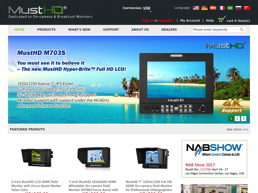 MustHD manufactures and sells the professional photo and video equipment for broadcasting. This online store offers the broadcast monitors (sizes: 5”, 5.6”, 7”, 9”) with many new built-in functions. MustHD guarantees the best image and sound quality, promoting the idea of innovative technologies development. Also, you will find such photo accessories, as follow focus systems, remote control systems, flashes, lenses, filters, batteries and chargers.