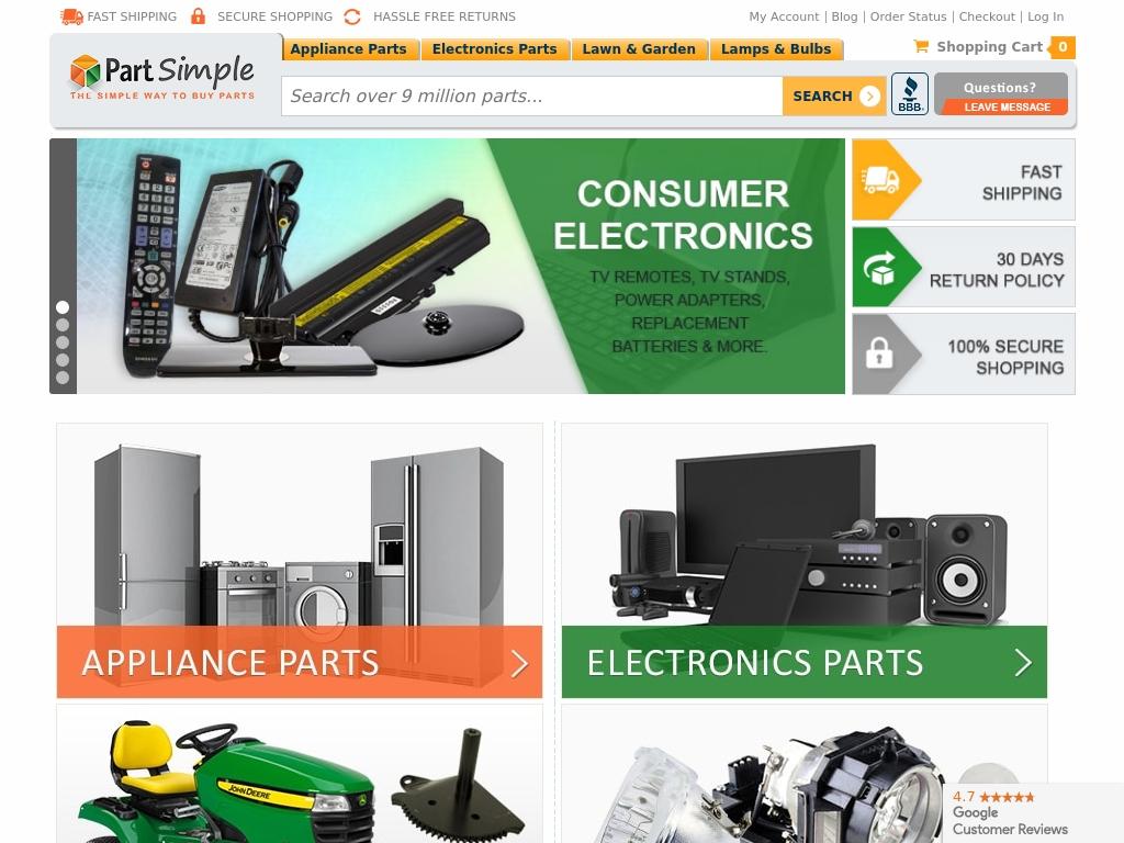 PartSimple is American online shop, providing the wide range of spare parts for various products. You will be able to purchase the product parts of the following categories: appliance parts, electronics parts, lawn and garden parts, lamps and bulbs parts and water filter parts. The products of the best quality from the leading world manufacturers are now available in PartSimple.